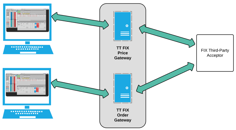 The TT FIX Gateways allow third parties to bridge their market data sources and matching engines with the TT environment.