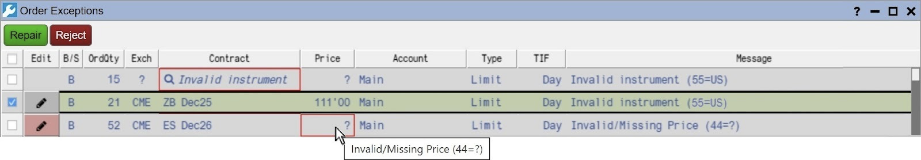 Sell-side institutions and brokers require tools for handling rejected care orders while managing a high volume of client orders. The Order Exception Widget displays FIX care order rejections and provides tools such as Repair and Reject to address these orders directly.