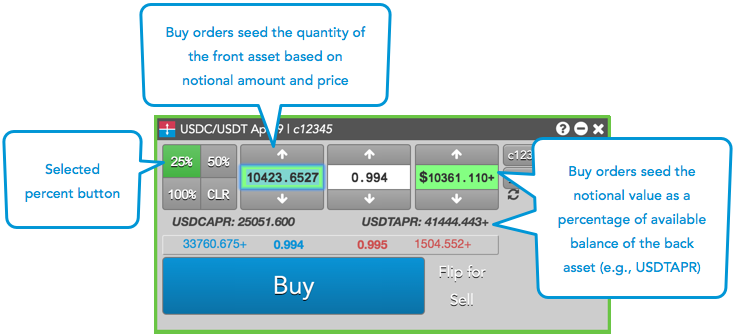 • パーセント数ボタンを使って、アセットで利用可能な特定のパーセント数に基づいて、注文枚数を簡単かつ正確に入力できます。