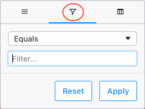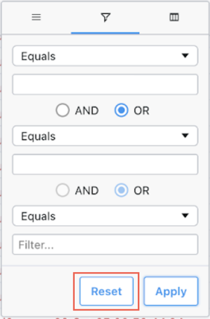 To reset all filters and the search terms: select the Reset button. The column will display the full, unfiltered dataset.
