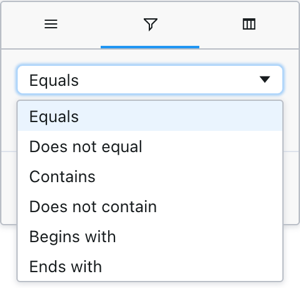 ) icon will appear beside the column name.DataLens provides multiple types of filters. The selected column filter determines which operators are available in the drop-down.