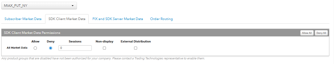Click the SDK Client Market Data tab to allow or deny access to the market data groups available at the